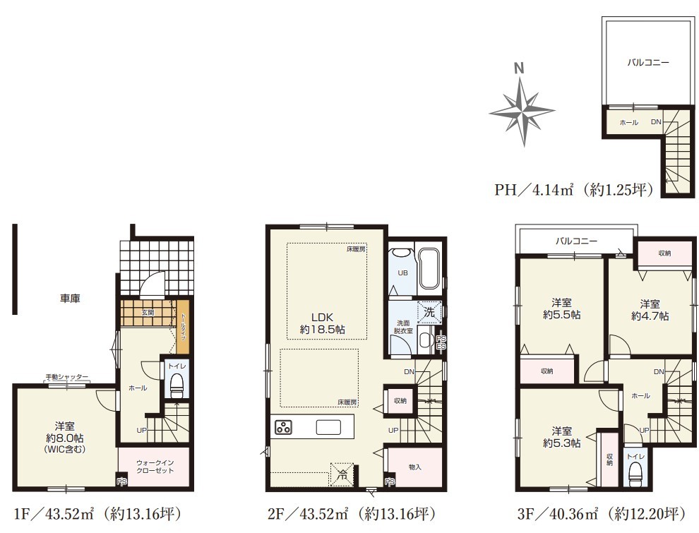 ◆ LDK18.5帖の4LDK+WIC+ルーフバルコニー+カースペースの間取りプラン!