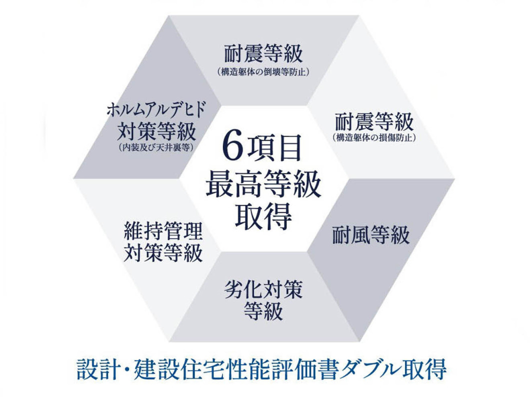 建物は断熱・省エネ性能に優れたZEH水準仕様×耐震等級3取得を前提とした高品質な住まいをご提案。WICやSIC、パントリーなど収納豊富なプランや家事動線の良い水回り集約設計などをご用意しています。
