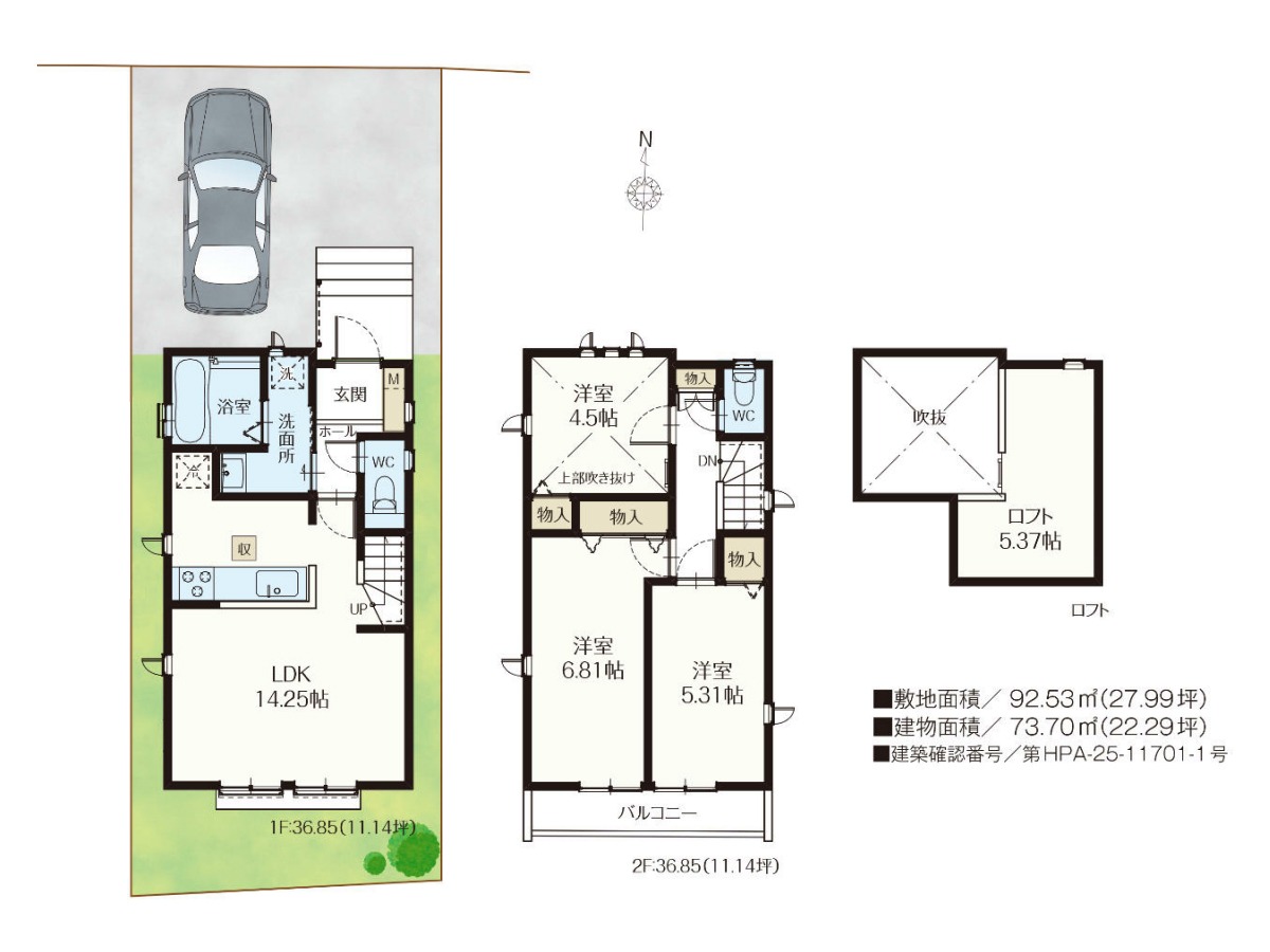 | 建築確認番号 | 第HPA-25-11701-1号 | 駐車スペース | 1台(カースペース) |