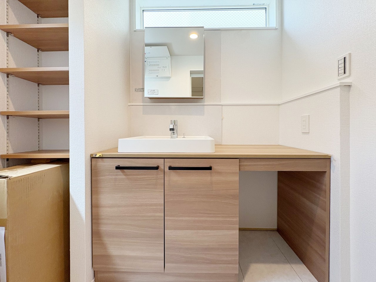 POINT3. デスク・棚・ルームウィンドウ付きのライブラリースペースがあり、在宅ワークや趣味が充実する空間