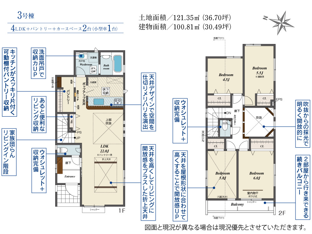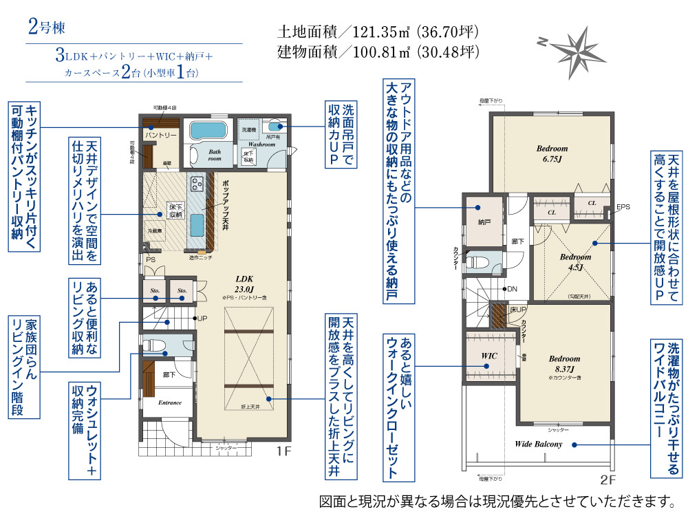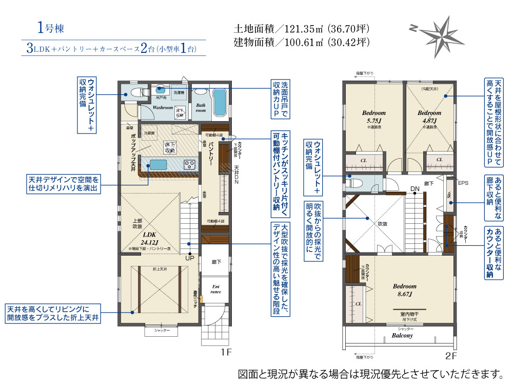 | 土地面積 | 121.35m² ~ 121.35m² 実測 | ||